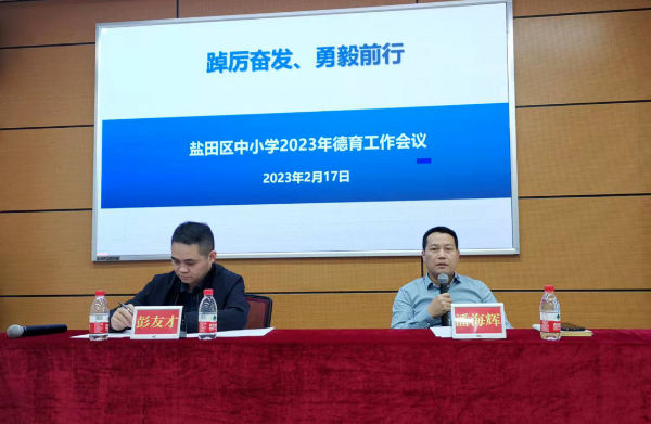 近日,盐田区教育局召开2023年中小学德育工作会议,区委教育工委副书记、纪工委书记潘海辉以及区教育局基础教育科负责人、各中小学校分管副校长、德育主任、区心理健康教研员等共计50余人参加会议。会议由区教育局基础教育科科长彭友才主持。