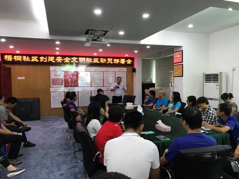 9月4日上午,梧桐社区在二楼会议室召开创建安全文明社区动员部署会,社区全体工作人员参加。