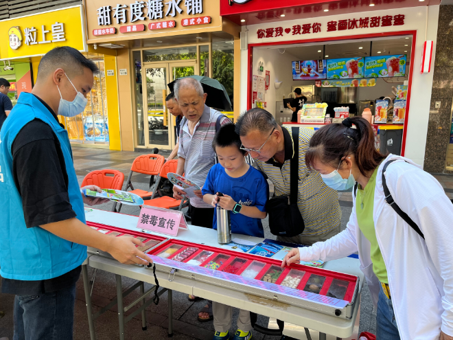 禁毒工作是一场持久战,为持续加大禁毒宣传力度,切实提高群众识毒、防毒、拒毒能力,7月24日,沙头角街道禁毒办在东和社区乐活城商业街道开展禁毒宣传活动。