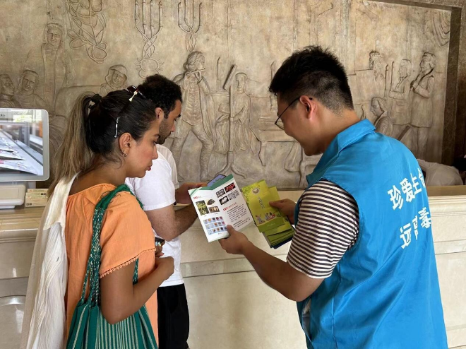 街道热情邀请辖区内的外国友人共同学习中国禁毒法律法规,并结合真实案例,向他们详细讲解了毒品对个人、家庭及社会的危害。与此同时,为了应对新型毒品在国际认知中存在的差异,突出“依托咪酯”在中国的违法性特征,禁毒社工提醒友人们,于10月1日“依托咪酯”已正式在中国被列管,未来贩卖、吸食等行为都将受到公安机关的依法处置。“依托咪酯”外形呈白色粉末状,不溶于水,引导外籍人士提高辨别和防范能力,要学会甄别,切勿轻易尝试陌生人给予的食物,发现违法行为及时拨打110,向公安机关进行举报。