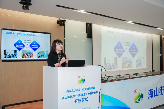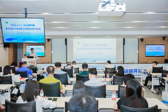 近日,海山街道举行“赋能基层人才 提升治理实效”2024年基层工作者培训班开班仪式。街道处级以上党员领导干部,机关各办副主任、科室负责人、公共事务中心各部部长等中层骨干,2021年以来新选调和新入职公务员,各社区党委班子成员等60余人参加。开班仪式由街道党工委委员、党建办主任翁钦响主持。