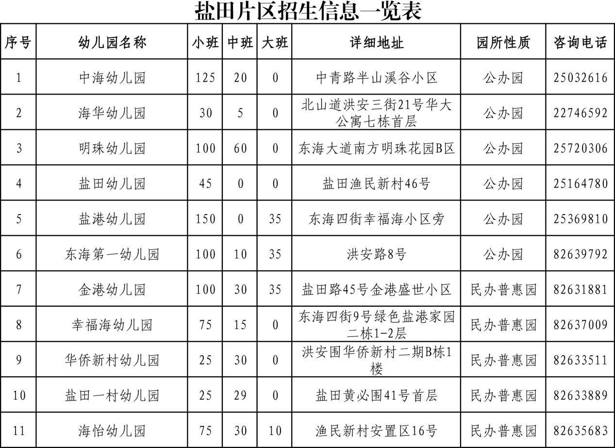 盐田区2022年秋季学期幼儿园实行按片区申请学位,具体安排如下。