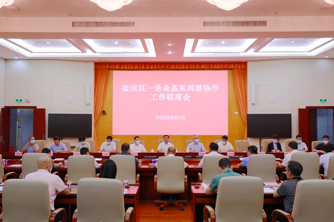 2022年8月9日上午,盐田区-乐业县东西部协作工作座谈会在盐田召开。会议总结了两地东西部协作取得的工作成效,并就下一阶段对口帮扶工作展开交流探讨。乐业县委副书记、县长黄茂兵,盐田区委副书记、政法委书记谷云宏,盐田区副区长周建军出席座谈会。