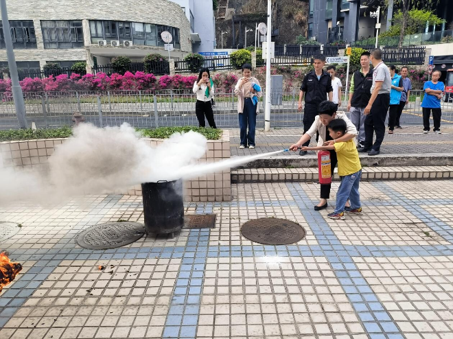 活动期间,由消防救援所侯保安详细讲解了发生火灾时,如何进行安全疏散、如何处置初起火情;街道应急办消防专干肖鸿耀对使用灭火器扑灭初起火情、防烟面具佩戴、消防水带连接及出水灭火等进行教学。随后,进行现场示范灭火器、消防栓、防烟面具等消防器材的使用方法,着重对今年新进人员进行了灭火演练指导,增强了新进人员对消防设备的认识和使用。