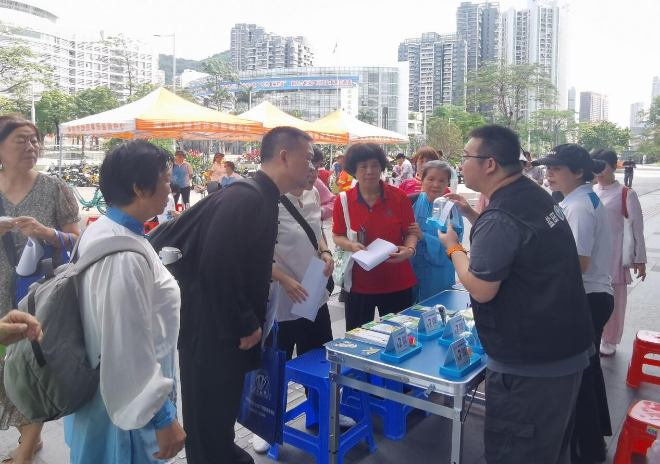 为提高居民群众健康水平和健康意识,让群众了解健康生活方式,做到认识毒品、拒绝毒品、远离毒品。2024年5月15日,盐田区海山街道联合盐田区文化广电旅游体育局在壹海城广场开展国民体质监测活动,同时组织禁毒志愿者在现场开展“健康人生,绿色无毒”禁毒宣传活动。