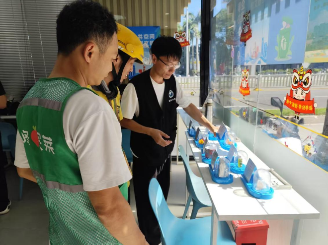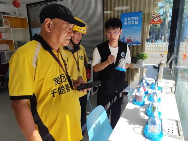 本次活动一改传统讲座形式,将宣传阵地直接设在人流密集的“暖蜂驿站”内。活动现场,最引人注目的是摆放有序的仿真毒品模型。工作人员利用小哥们歇脚、充电的碎片化时间,主动上前,结合这些逼真的模型,重点讲解了常见毒品特别是包装极具迷惑性的新型合成毒品的特征与危害。讲解紧密贴合快递、外卖从业人员的工作生活实际,不仅普及了“如何辨别可疑包裹”、“发现涉毒线索如何安全举报”等实用知识,还特别警示他们在日常奔波中要保持警觉,切勿因好奇或他人引诱而触碰毒品红线。这种“接地气、面对面”的交流方式,吸引了众多小哥驻足聆听和咨询,现场互动氛围热烈。