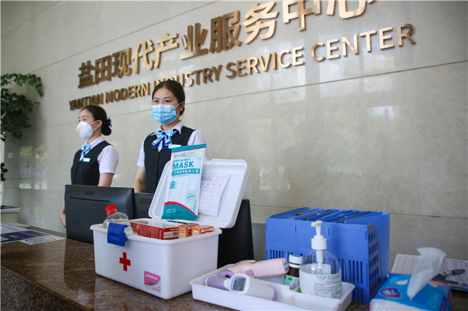 黄先生是在盐田现代产业服务中心一家科技公司上班,他告诉记者:“公司的各项防控措施也很到位,每天都会消杀消毒,这让大家工作起来很安心。”在盐田现代产业服务中心,记者了解到,企业员工需接受热成像仪测量体温,凭出入二维码进入大楼。对于来访人员,则需在体温检测基础上,出示行程码和健康码,并登记个人身份信息确认后,凭临时出入码进入大楼。