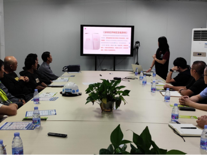为持续推进禁毒宣传教育工作,增强一线务工人员识毒、防毒、拒毒意识,营造健康文明、平安无毒的施工环境,近日,梅沙街道办联合梅沙派出所在中建八局一楼会议室开展“禁毒宣传进工地 共筑禁毒新防线”活动。