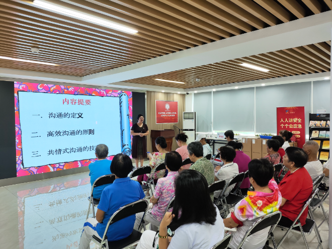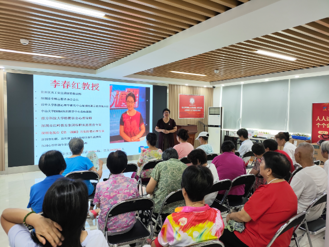 近日,由盐田区关工委宣讲团指导、滨海社区党群服务中心主办的“老少同声颂党恩、携手奋进新征程”主题宣讲活动在社区党群服务中心二楼活动室举办。本次活动特别邀请清华大学积极心理学研究中心深圳基地主任、深圳市巾帼志愿者协会会长李春红教授,为辖区20余名家长带来了一场别开生面的“亲子共情式沟通技巧”专题讲座。