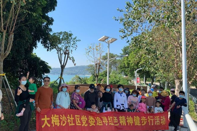 接着,全体参与活动人员从大梅沙社区工作站出发往小梅沙段栈道行走,一路上大伙们有说有笑沿途欣赏滨海梅沙美丽的风景,重温长征历史,用坚韧步伐丈量热土,用意志谱写征程,用运动礼赞百年,传承长征精神,书写少年青春华章。