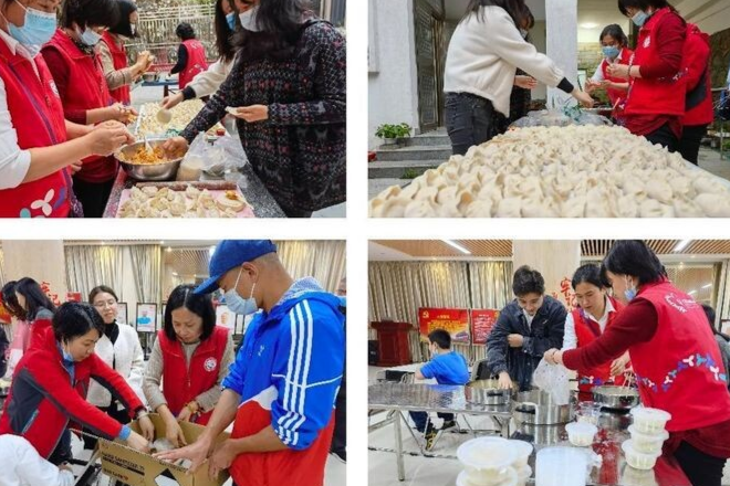 据悉,春节前夕社区党群服务中心开展了系列活动,比如写春联和线上送福活动;小年夜晚上,党员和社工完成了一天工作后,又开始忙碌给仍在2个小区卡口值守的联防队员、保安、志愿者和24小时工作的三人小组、数据员,共30名一线人员包饺子和包子。