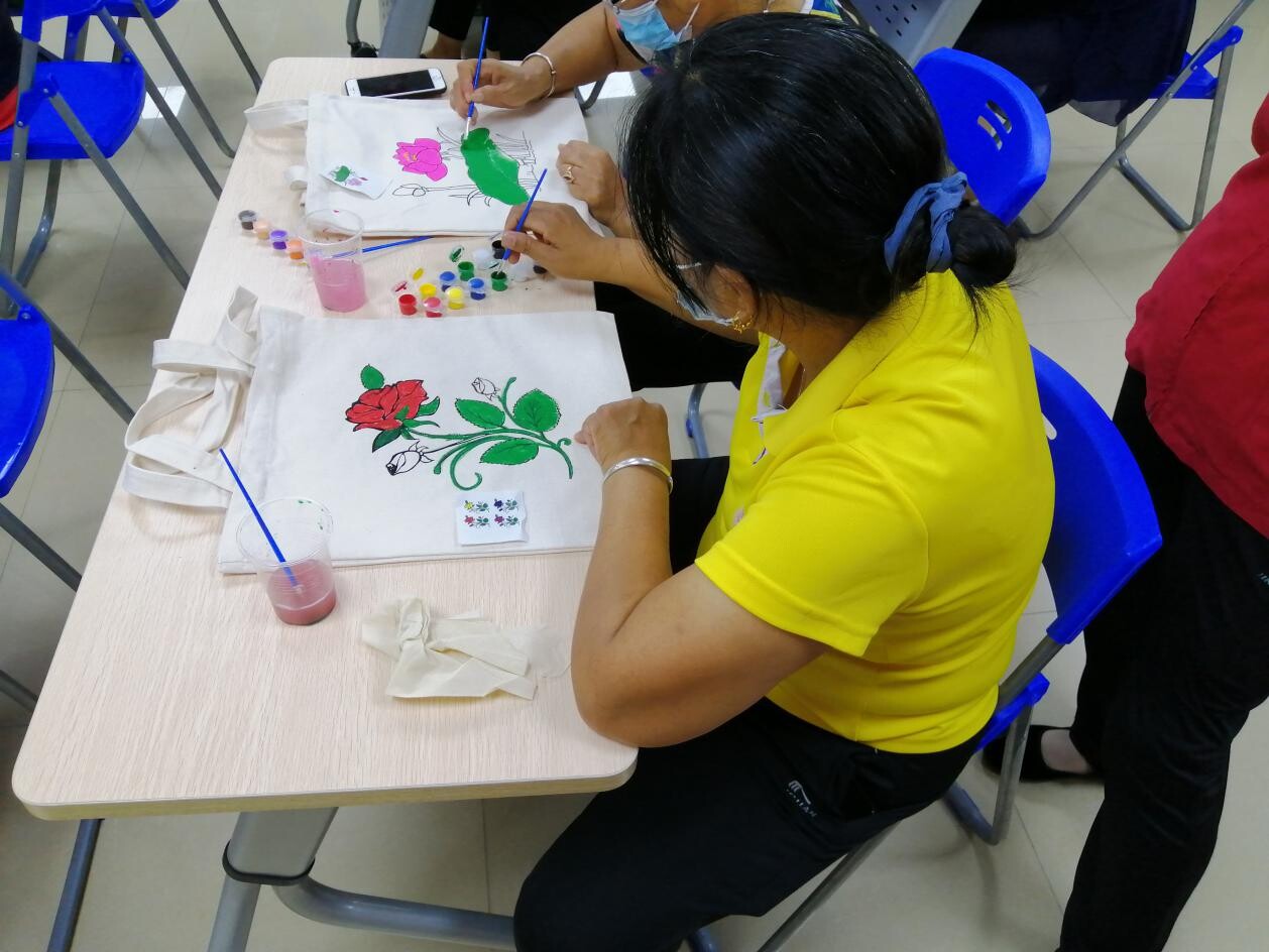 本次小组一共分为5节,组员们积极配合我们的防疫工作,在活动过程中均主动佩戴口罩。社工通过引导组员给扇子填色、制作无纺布相框、香囊、纽扣花和DIY帆布包,结合手指操等动作训练来加强她们的专注力、肢体平衡力、手脑协调性、控制力和创造力。活动过程中,组员认真听社工讲解,认真学习手指操,互帮互助、分工协作来完成手工作品。一个又一个精致又有创意的作品从组员的手下诞生。参与活动的组员们也与社工从不识到相熟,建立起了深厚的友谊。