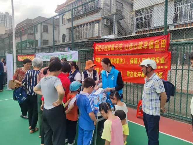 “五一”国际劳动节到来之际,为全力保障社区居民与往来游客度过一个平安欢乐的假期,4月29日下午,盐田街道综治办联合盐田社区党群服务中心,在渔民新村篮球场开展“欢乐过五一,无毒伴我行”禁毒宣传活动。