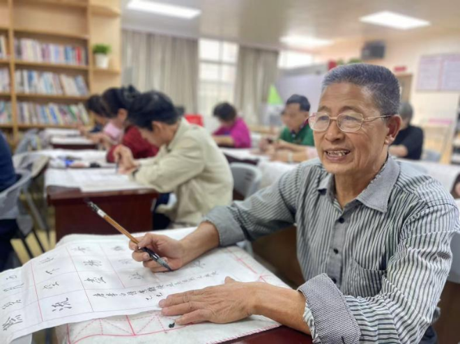 笔墨传情润桑榆。11月10日下午,东海社区党委在党群服务中心二楼开展东海社区长青老年大学书法班结业典礼。自今年9月1日开班以来,历时两个多月,共开设16节课,累计服务社区老年居民329人次。学员在横竖撇捺间体悟传统文化魅力,收获晚年学习乐趣。面对多数零基础学员,授课老师从执笔、运笔等基础教起,细致讲解笔画要领,并加以口诀强化记忆。从单一笔画到完整作品,学员进步有目共睹。书法班的开设不仅是长者书法技巧的学习,更是社区书法爱好者交流的平台。