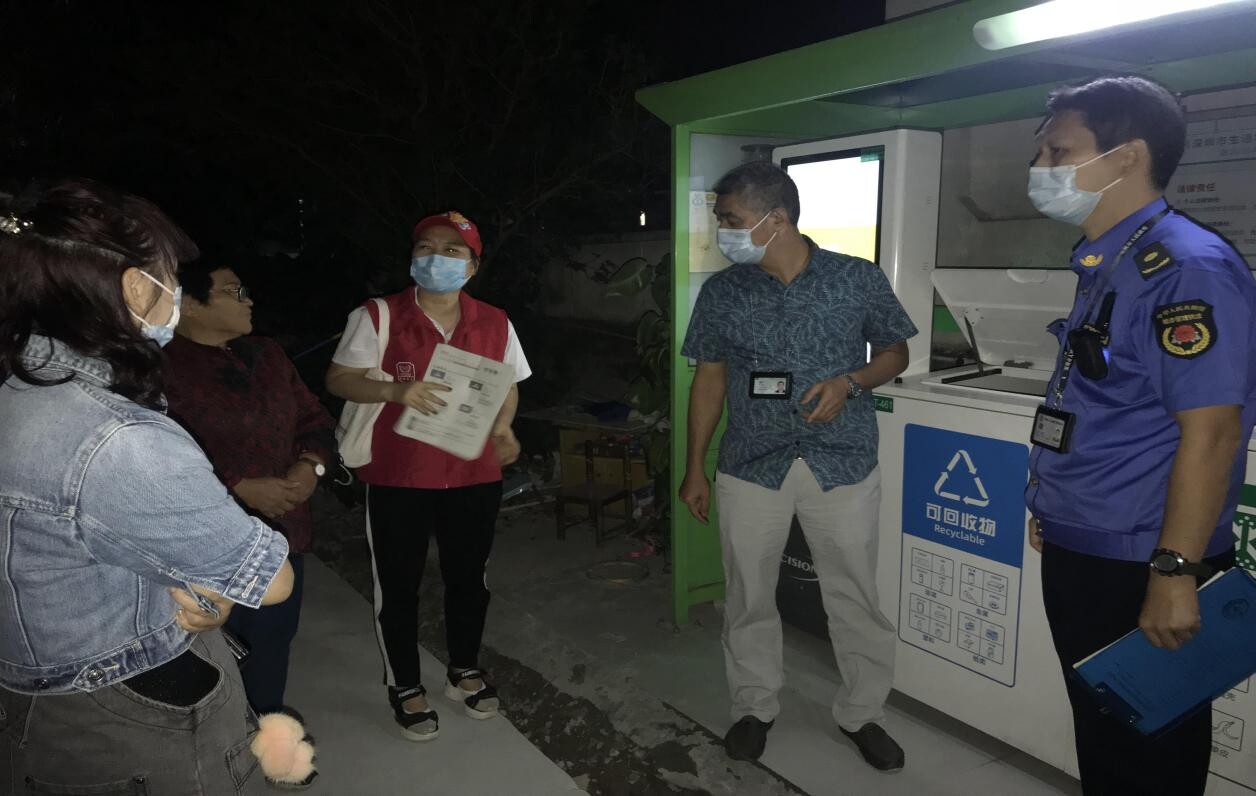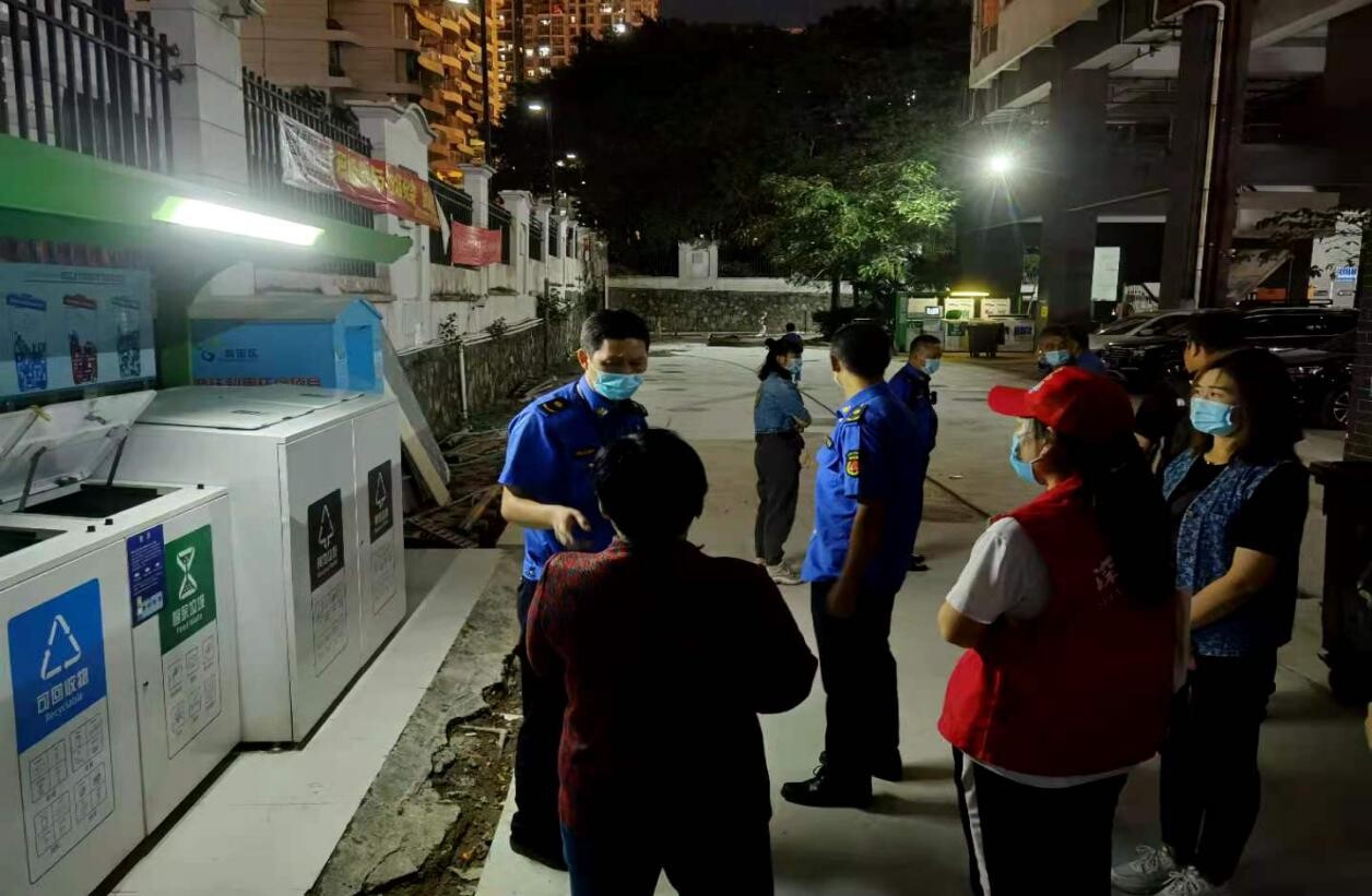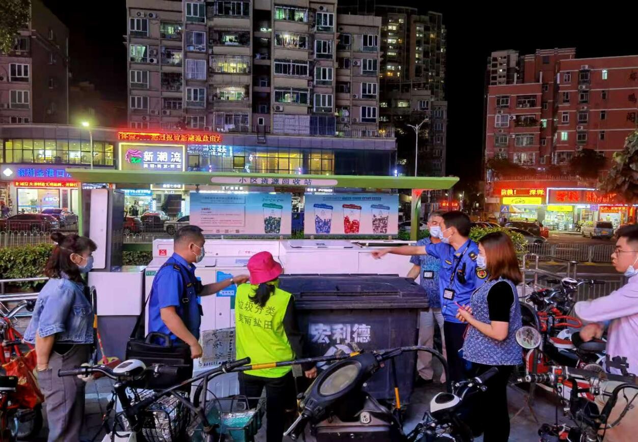 为积极贯彻落实《深圳市全面推进生活垃圾强制分类行动方案》文件要求,提高辖区物业小区分类实效,11月27日晚上,盐田街道城建办、综合行政执法队和明珠社区工作站针对部分“集中分类投放+定时定点督导”山海苑、麓港国际、金港盛世等小区开展垃圾分类夜间督导检查。工作人员对居民主动参与垃圾分类情况、督导员在岗情况、厨余量和督导记录工作、分类点设施维护情况等进行巡查。检查情况整体良好,并对督导员脱岗、工作责任心不强,垃圾清运不及时等问题及时提出整改。