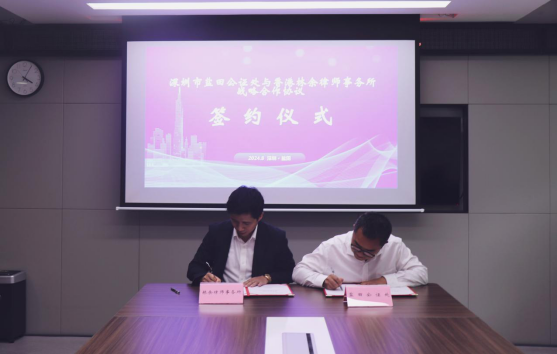 8月21日下午,盐田公证处与香港林余律师事务所签订战略合作协议。盐田区司法局局长余永弘及党组成员李雨轩见证签约。