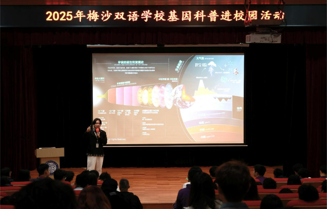 在梅沙双语学校,讲座围绕极端环境生命科学展开,系统介绍了华大集团在高原与深海领域的科研实践成果,通过珠穆朗玛峰攀登科学考察和万米深海探索案例,引导学生认识生命对极端环境的适应与进化,增强科学认同感与家国情怀。