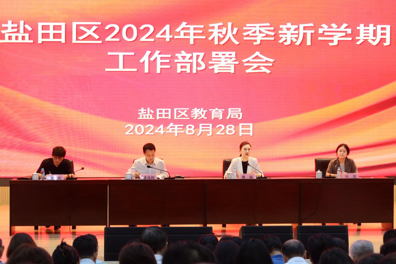 近日,盐田区2024年秋季新学期工作部署会在田东中学举行。盐田区委教育工委书记、区教育局党组书记、局长傅瑜等区教育局班子成员,机关各科室、教科院、教育服务中心主要负责人,以及全区中小学书记、校长,幼儿园园长、副园长参加会议。