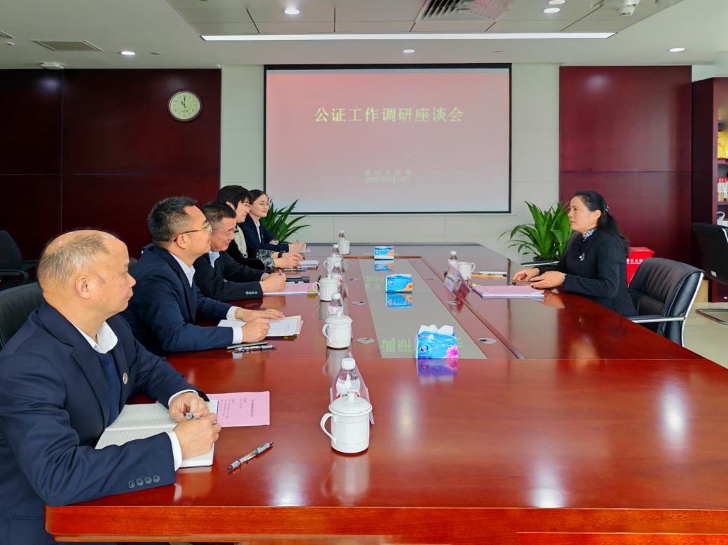 座谈会上,盐田公证处主任梅利斌详细介绍了公证处在业务发展、队伍建设、制度建设等方面的工作情况,重点汇报了近年来在服务民生、优化营商环境、参与社会治理等方面取得的成效,也分析了盐田公证处长期高质量发展面临的困难以及存在的体制机制障碍。