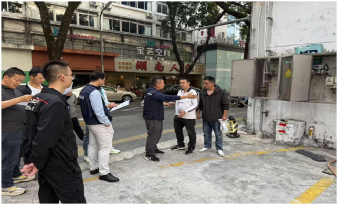 检查组一行重点检查沙头角街道-三环大厦充电站,现场听取了运营企业负责人关于场站安全管理工作的汇报,随后对该场站充电设施进行安全检查。此外,区住建局、燃气集团、盐田供电局根据现场供电设施、燃气管道与充电桩存在安全间距情况,结合职责提出相关整改意见建议,会同沙头角街道办督促生产经营方按照要求落实,严防安全事故发生。