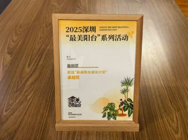 近日,盐田区2025年“最美阳台”系列活动顺利结束。期间,盐田区城管和综合执法局采取线上线下相结合的方式,积极推进“最美阳台成长计划”与“最美阳台展示评选”工作,先后组织开展了“最美阳台与十五运同行”、“花店宣传推广”、“恩上湿地公园最美花园探访日”等活动,圆满完成系列安排。2025年11月,盐田区荣获深圳市家庭“最美阳台成长计划”卓越奖。