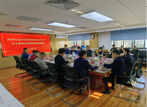 2025年12月29日上午,盐田区财政局组织开展盐田区国企国企系统2025年生产安全事故应急预案桌面推演,参演单位包括区财政局、深圳市深沙保(集团)有限公司、深圳市盐田区城市建设投资集团有限公司和深圳市沙头角商业外贸有限公司,本次推演以盐田区沙保国际创新园配餐中心3楼厨房火灾事故为模拟场景。区财政局局长吴飞虎同志、国库支付中心陈亮主任参加本次桌面推演。