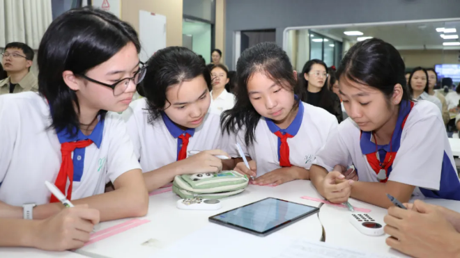 作为深圳市教育数字化转型“揭榜挂帅”项目,盐田区组建了覆盖区内及帮扶地区约300名骨干教师的“学科AI数智研修共同体”。通过系统开展“AI教研员”辅助课堂反思、“人机协同”听评课、师徒结对磨课备课、跨区域双师课堂、线上评审及资源共建等系列活动,推动人工智能与教研深度融合,持续扩大数智研修的辐射面和影响力。