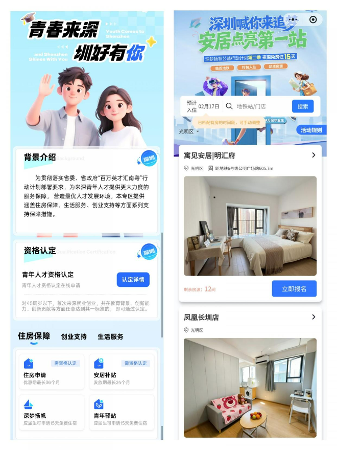 i深圳青年人才专区、“深梦扬帆”小程序