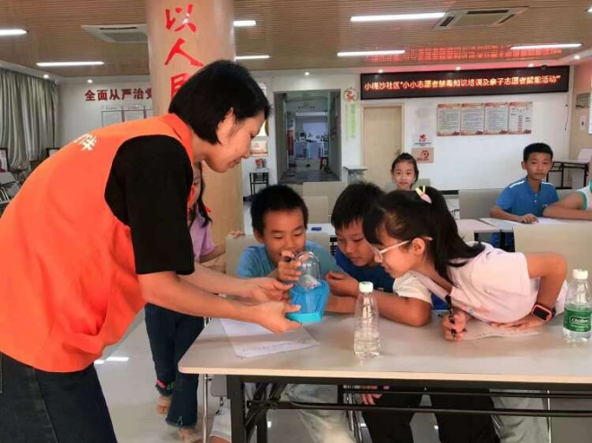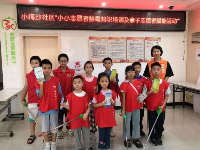 据悉,小梅沙社区“伴你成长”亲子志愿者队伍是梅沙街道“一社区一品牌”禁毒项目之一,“小小志愿者们经常利用暑假和周末‘沉浸式’向居民群众讲解识毒、防毒、拒毒的知识”。社工肖带发说,希望孩子们能在做志愿者的时候,潜移默化的助人助己树立健康的观念,自觉远离毒品。