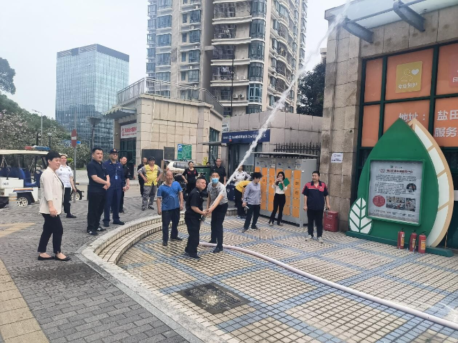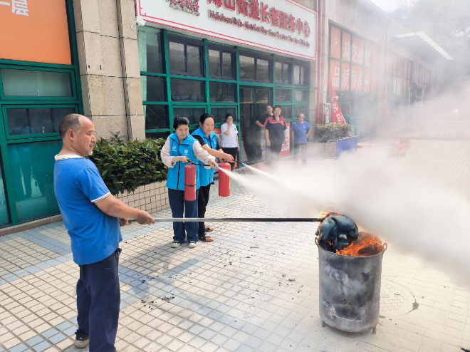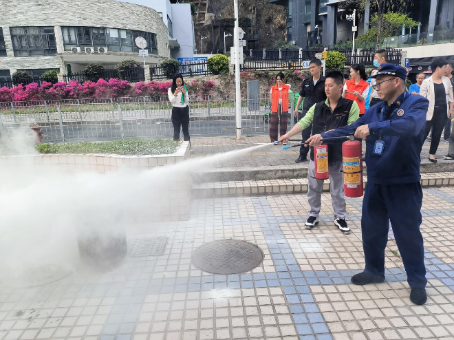 活动期间,由消防救援所侯保安详细讲解了发生火灾时,如何进行安全疏散、如何处置初起火情;街道应急办消防专干肖鸿耀对使用灭火器扑灭初起火情、防烟面具佩戴、消防水带连接及出水灭火等进行教学。随后,进行现场示范灭火器、消防栓、防烟面具等消防器材的使用方法,着重对今年新进人员进行了灭火演练指导,增强了新进人员对消防设备的认识和使用。