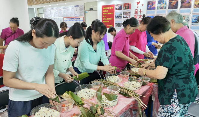 端午节前夕,滨海社区党委组织开展包粽子活动,党员志愿者、居民骨干纷纷参与活动。大家围坐一堂,切磋技艺,互帮互学,巧手翻飞间,粒粒饱满的糯米与碧绿的粽叶交织,化为一个个棱角分明的端午“信物”。现场气氛温馨融洽,邻里情谊在指尖的交流与话语的分享中悄然升华。包粽子不仅是一场生动的民俗体验,更成为密切党群干群关系的有效纽带,社区温馨和谐氛围愈发浓厚。