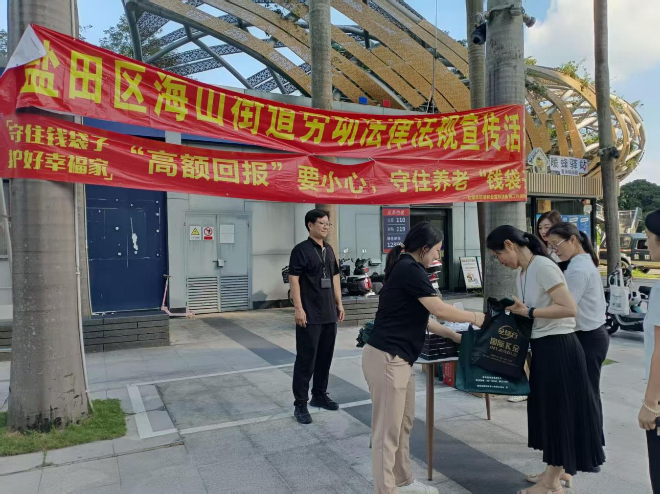 活动内容包括:一是开展线下宣传,在辖区内沙保国际创新园、壹海城商圈、广富百货商圈等人流密集场所开展摆摊宣传累计6场次,现场悬挂相关主题横幅,开展面对面答疑,覆盖周边居民、劳动者近2万人次;二是线上转发劳动普法链接到企业微信群约20次,覆盖企业约5000家次;三是在沙保食堂、明厨有膳、沙县小吃等保税区工人就餐集中区域摆放印有“安薪在深”二维码的手机支架、纸巾等宣传品,覆盖重点就餐场所,让维权通道“触手可及”。