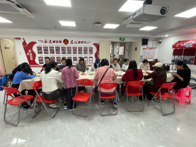 手工环节结束后,进入了轻松惬意的茶话会时光。社区精心准备了茶点与水果,姐妹们围坐在一起,品尝着清茶,分享着刚才制作手工的喜悦,也聊起了生活中的点滴趣事与持家心得。从职场奋斗聊到家庭经营,从个人成长谈到社区建设,现场气氛热烈而温馨。大家放下了平日里的忙碌与疲惫,在欢声笑语中拉近了彼此的距离,感受到了社区大家庭的温暖。