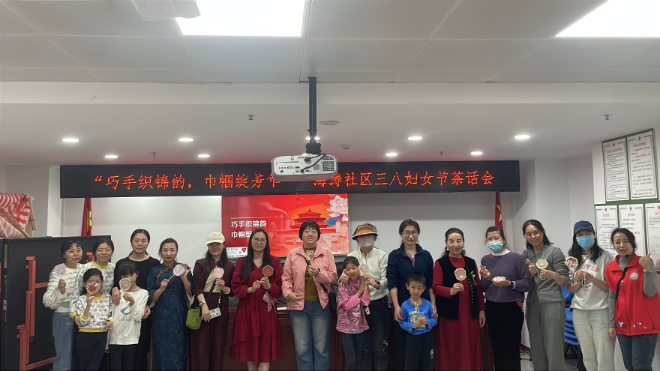 3月8日下午,海涛社区活动室内暖意融融、笑语欢声,一场以“巧手织锦韵,巾帼绽芳华”为主题的妇女节茶话会在此温馨举行。活动通过红色故事宣讲、非遗手工体验与雅致茶歇相结合的形式,让社区女性在感受传统文化魅力的同时,度过了一个充实愉快、富有意义的节日。