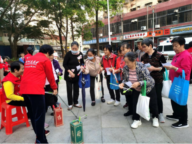 游戏互动环节妙趣横生,成为全场亮点。“丢沙包”趣味盎然,居民踊跃参与;“掷骰子”轻松欢乐,笑声此起彼伏;传统“投壶”更受青睐,大家有序排队,沉浸于古韵雅趣之中。每当精准投中,现场便爆发出阵阵掌声与喝彩,气氛热烈非凡。