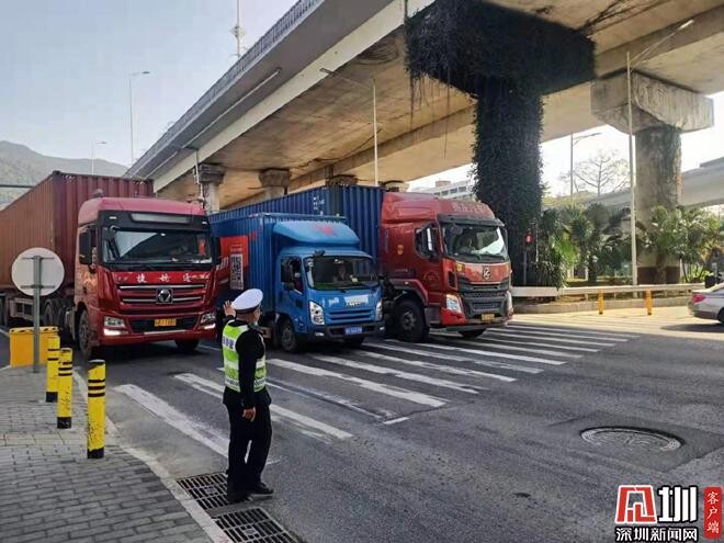 为了应对节前货运高峰期的到来,盐田街道提前行动、周密部署,交通治理组全员出动,24小时上街值守、疏导巡逻,维持交通秩序,为货柜车司机和居民正常出行提供安全保障。
