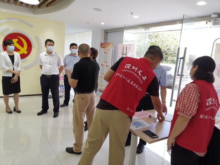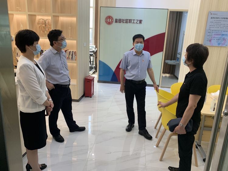 6月17日上午,区人大常委会党组副书记、副主任、区总工会主席陈佩瑜,区总工会常务副主席卢湘玲,区总工会副主席张远飞等一行,在街道党工委书记张智,街道办副主任、总工会主席黄移真陪同下,先后到沿港社区职工服务中心、盐田社区职工之家、北山工业区职工服务中心调研指导“职工之家”建设工作。