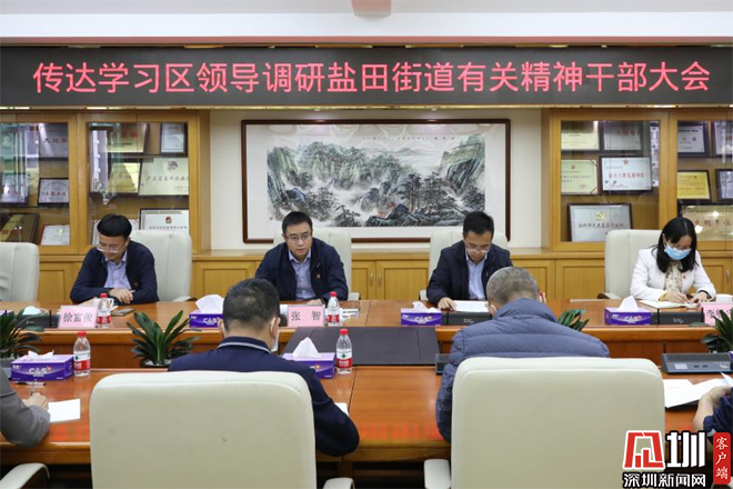 见圳客户端·深圳新闻网讯(记者 郑创彬 通讯员 龙冠廷)2021年3月25日上午,盐田街道召开干部大会,迅速传达学习贯彻区领导调研盐田街道有关讲话精神。会上,盐田街道党工委副书记、办事处主任许思平传达了区委书记陈清、区长邓飞波在盐田街道现场调研及座谈会上的讲话精神。盐田街道党工委书记张智强调,全街道党员干部要迅速贯彻落实区领导调研盐田街道有关讲话精神,坚定不移地把区委区政府的决策部署落到实处,全力服务“产业兴盐”“创新驱动”战略,为盐田高质量全面建成宜居宜业宜游的现代化国际化创新型滨海城区作出更大贡献。