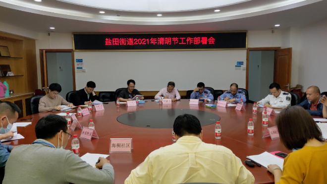 街道办事处公服办牵头,各社区工作站,街道应急办、综合行政执法办,盐田派出所、盐田港派出所等单位组成联合服务队,在辖区7个深埋绿化地值班值守,各深埋绿化点出入口处设立卡口和临时医学观察点,口罩、消毒液等防疫物资充足,安全管理到位,处突力量充足。祭祀期间值班值守人员211人次,管理服务祭扫群众492人,整体平稳有序。