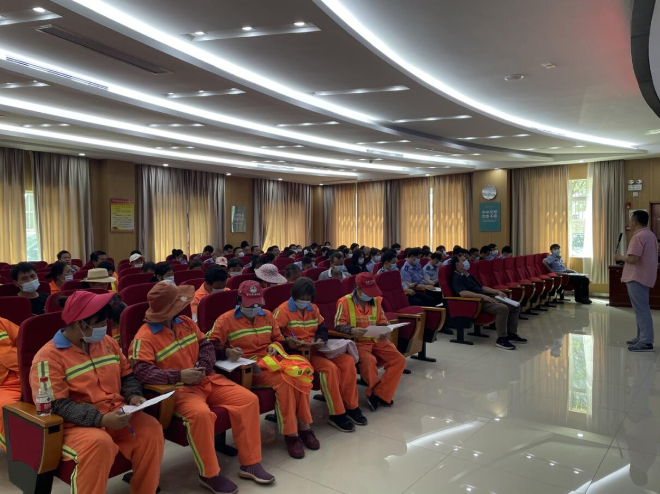 为进一步提高盐田街道市容环境管理工作水平和环境卫生管理人员的工作能力,提升环卫专业素养,全面做好辖区市容环境工作。4月27日、4月29日,盐田街道分两批组织市政、城中村清扫保洁服务单位,垃圾清运单位班组长及骨干员工,街道城建办、各社区城管专员、全体网格员等200余人开展环境卫生指数测评培训大会。街道党工委委员、城建办主任蔡志恭作动员讲话。