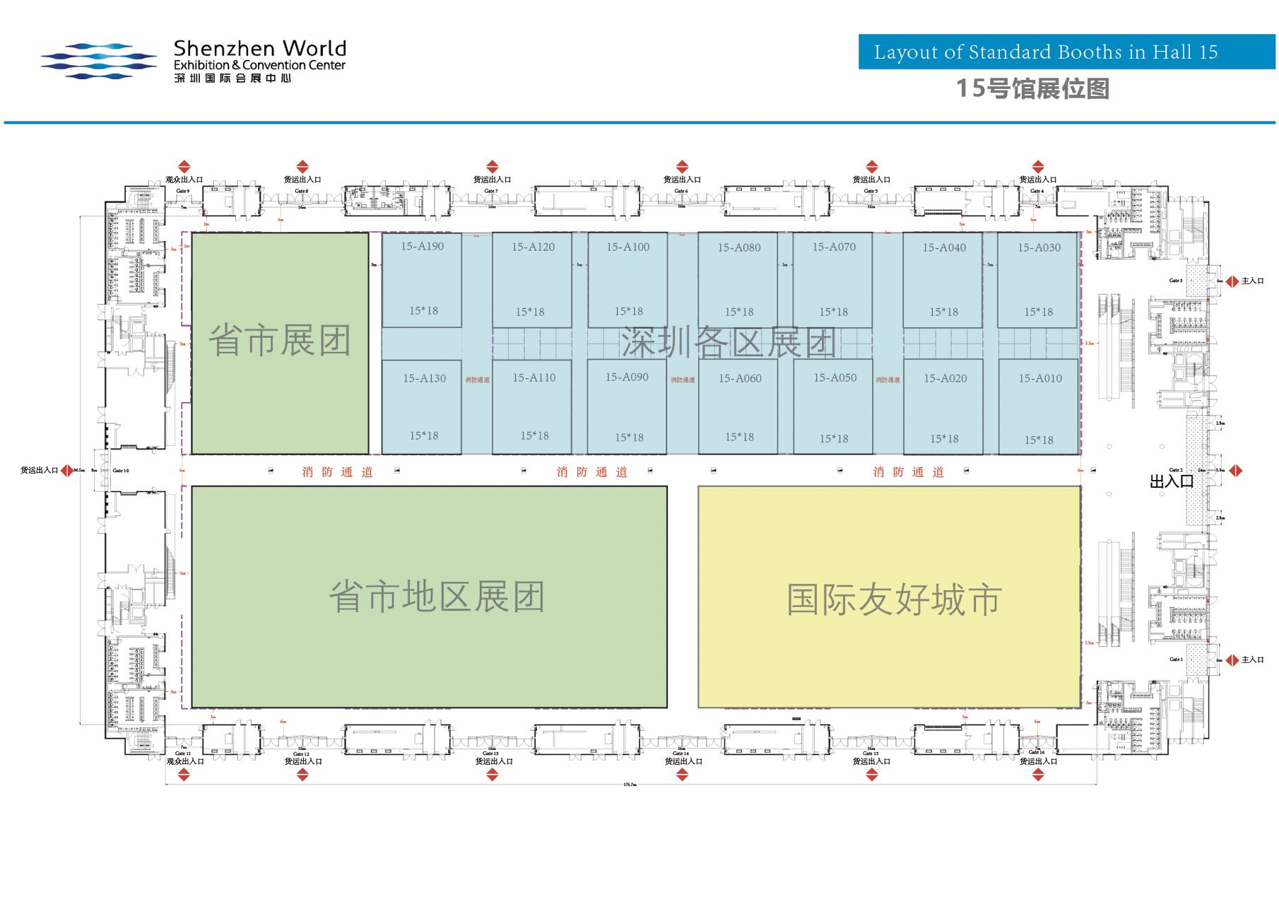 深圳国际会展中心15号馆,面积为270平方米(18米×15米),展位号15-A100。