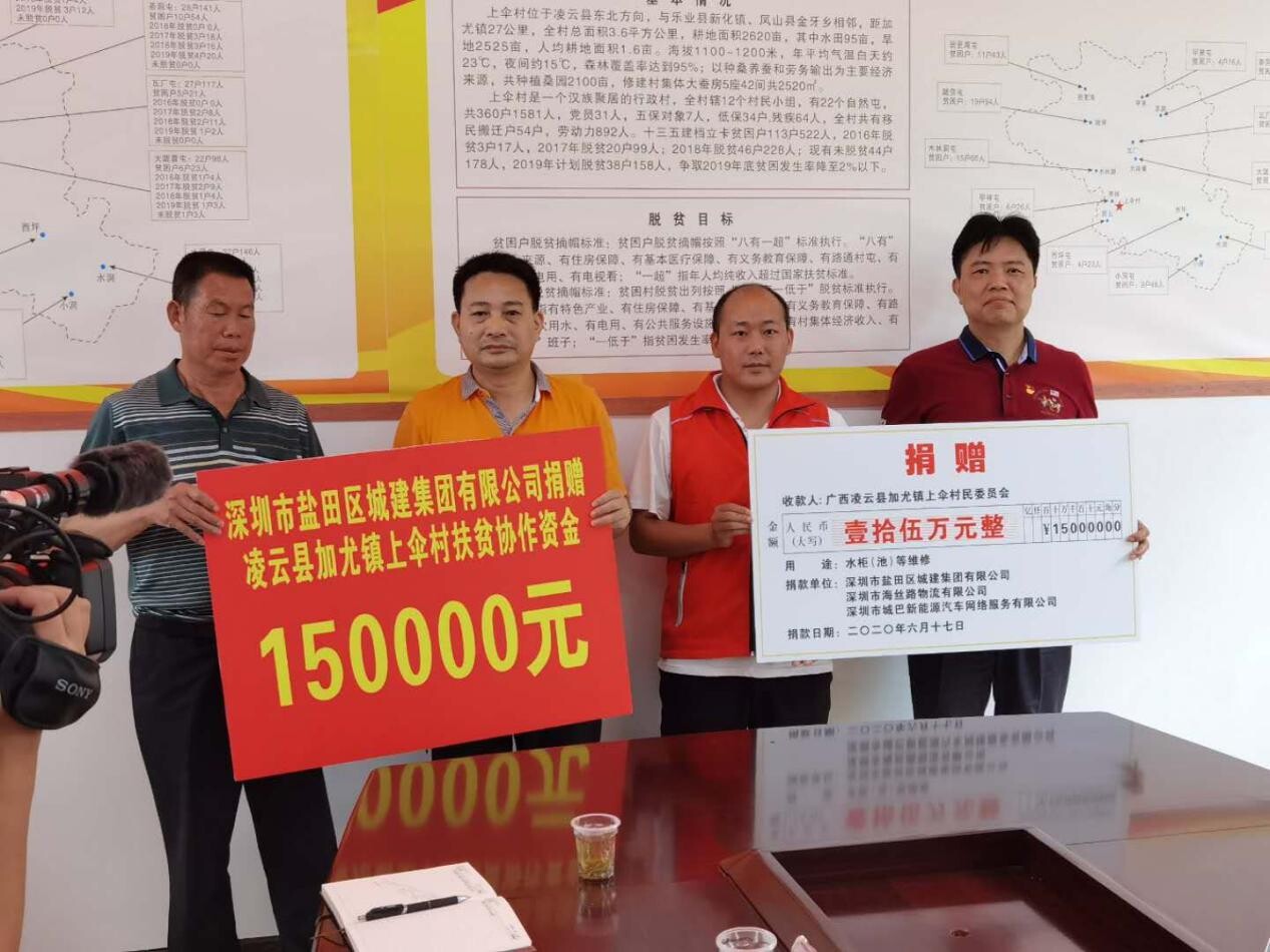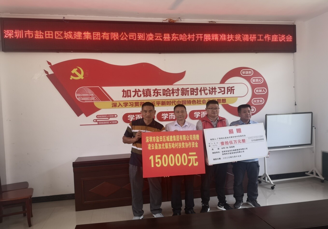 2020年6月16日至17日,深圳市盐田区城建集团有限公司党委书记、董事长朱志坚同志率队到凌云县贫困村开展结对帮扶工作活动。凌云县委常委、县人民政府副县长陈洋,县委常委、县人民政府副县长黄宇冬,县公安分局政委黄国章等领导陪同参加活动。