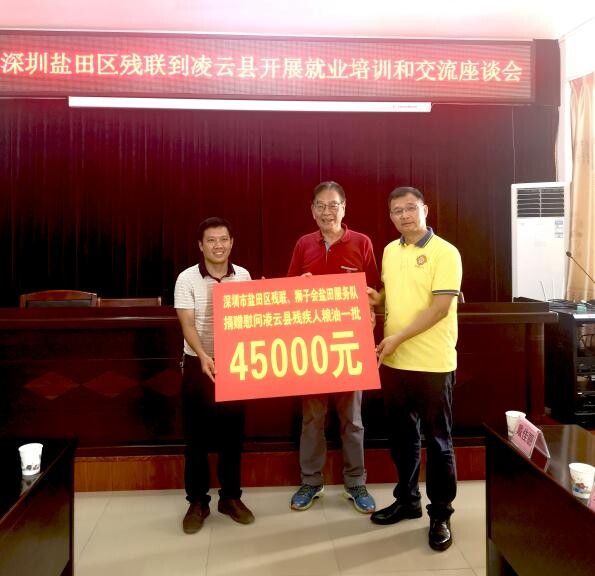 会后,陈颖同志一行前往凌云县行政广场开展残疾人就业专场招聘会,深圳市盐田区残疾人联合会联合凌云县嵩鑫电子有限公司开展残疾人就业咨询、就业指导、就业服务活动;同时,联合深圳市狮子会盐田服务队开展“助残脱贫、决胜小康”暨慰问特困残疾人活动。