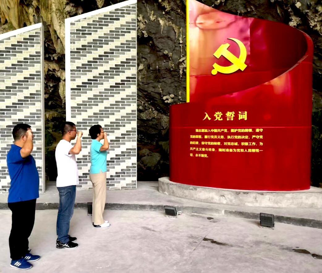 随后,陈颖同志一行到金山茶山示范基地考察,调研凌云县有机白毫茶的品质、规模等种养情况;并前往浩坤村村史馆和“棕榈洞”党建“双促”教育实践基地参观,感受浩坤村人民生活发生翻天覆地的变化,面对党旗全体人员重温入党誓词,纷纷表示将“不忘初心、牢记使命”,发扬老一辈革命家的优良传统,张扬艰苦奋斗的精神,始终铭记作为一名共产党员的初心和使命。
