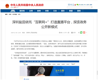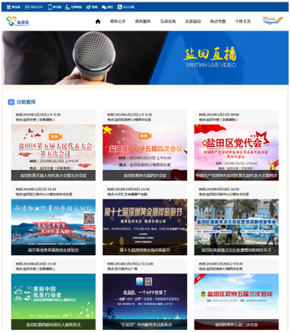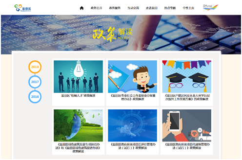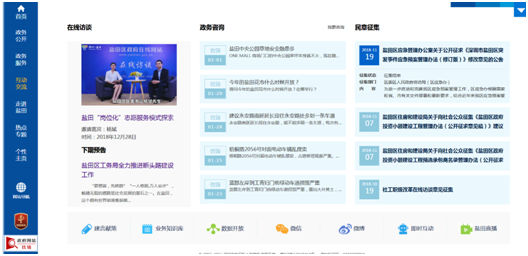 一是充分发挥“盐田政府在线”门户网站信息公开第一平台的作用,主动、及时、全面、准确的发布和解读政府信息。强化政府网站互动功能,畅通政民互动渠道,及时回应社会关切。加强政府网站与广东政务服务网的融合对接,提升便民服务能力和智能化水平。2018年,围绕本区年度重点工作和社会热点,通过数字化、图表图解、音频、视频等方式,建设2018年盐田区十大重点民生实事专题栏目以及“盐田建区20周年专题”、“城市更新专题”“中英街专题”“盐田区2018两会专题”等6个热点专题;探索政务公开新模式,依托盐田政府网站建设盐田直播栏目,对区内大型政务活动(党代会、两会)、新闻发布会、大型活动(文博会、旅游节)进行全平台(PC、手机、平板)的视频和图文直播,直达群众,发布第一手政务信息,响应群众,提升政府公信力,成效显著,获得了国务院网站的表扬;进行数据开放,开放空气质量数据表、污染源废水监测数据表等数据,进一步满足民众需求。