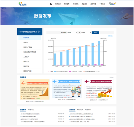 五是加强数据解读,在政府门户网站上建立“数据发布”专栏,对我区综合经济、人口、地区生产中总值、社会消费品零售总额、工业生产、财政支出、政府采购、固定资产统计等指标以图表形式展现;图解2018年我区经济形势分析,并对外公开其数据解读。