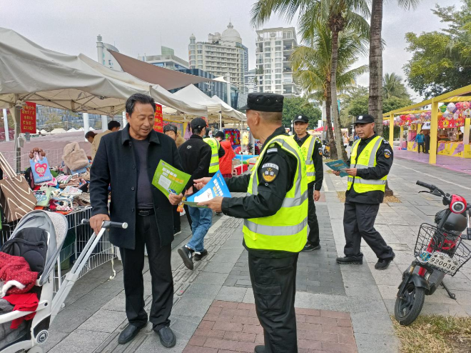 活动中,海山街道深入海景栈道景区内公园、广场通过张贴反恐宣传海报、趣味问答、案例宣讲、发放宣传资料及宣传品等方式,面对面地向集市商贩和游客讲解《中华人民共和国反恐怖主义法》《南粤平安 全民防恐》《公民预防恐怖活动行为指引》相关法律中涉及的公民权利义务,向游客群众传授紧急避险及自救互救常识,鼓励群众及时举报涉恐涉暴违法犯罪行为。