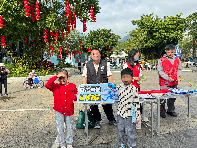 为做好岁末年初禁毒宣传教育工作,进一步提高人民群众识毒、防毒、拒毒能力和参与禁毒斗争意识。2025年1月23日上午,深圳市盐田区海山街道平安法治办以2025年深圳迎春花市为契机在盐田中央公园开展以“迎春花市迎新春,禁毒筑就平安年”为主题的禁毒宣传活动。