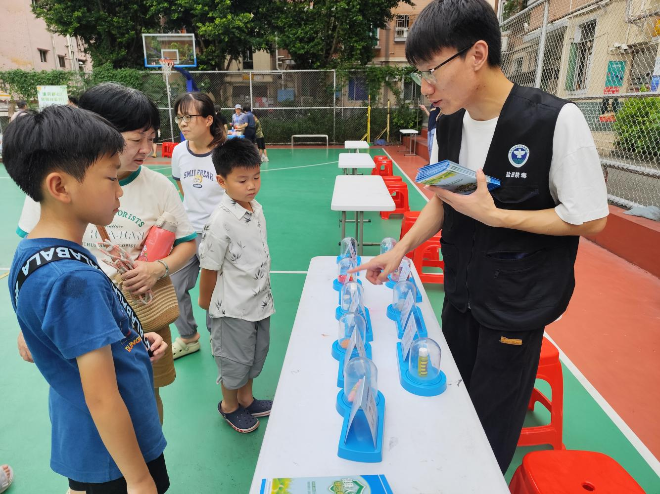 此次集市活动设置了多个摊位,包括美食品尝、水果分享、甜品试吃、亲子手工体验等,吸引了大量居民驻足参与。在活动现场,禁毒宣传摊位格外引人注目,通过展示仿真毒品模型,向群众直观揭示传统毒品和新型伪装毒品的样貌与危害。同时,社工通过图文并茂的展板和生动讲解,重点介绍了“依托咪酯”“邮票”“笑气”等新型毒品的伪装手法和成瘾机制,引导居民特别是青少年增强防范意识。此外,工作人员还向群众发放禁毒宣传手册,鼓励居民主动传播禁毒知识,共同营造健康、安全的生活环境。