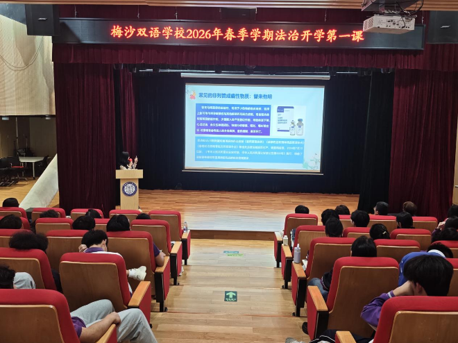 为深入推进青少年毒品预防教育工作,增强在校学生识别药品滥用风险与安全用药的意识和能力,近日,梅沙街道办联合梅沙派出所在梅沙双语学校开展“禁毒开学第一课”专题讲座,聚焦“非列管物质”滥用这一容易被忽视的风险领域,筑牢校园禁毒防线。